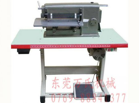 本機適用于皮具廠,皮帶廠,涼鞋廠,飾條廠,制衣廠的真皮,皮革,紙板的開條。特點:小巧美觀、占用空間小,無噪音,分條與暫停任意控控制。 本分條機是萬氏機械成立以來的主打產品,無論是外觀或是產品質量都為同行拿來效仿與復制。細心朋友會發現網上有些圖片與我廠分條機圖片一致,但其圖片放大會模糊。本分條機的配件與選材都經過十余年的優選,已日趨完美。以衣車馬達作動力,用腳踏控制,操作靈活方便。刀片間距之間所用墊片都經淬硬研磨,尺寸準確穩定,分出來的真皮條美觀,邊直,無毛邊,為你減少產品的報費率。下面的膠輥采用進口橡膠王,可保分條時不掉渣,不易損耗,可長時間的開條。而我廠所配的刀片來源上海大型專業刀片制造商,已合作十余年,質量比較穩定,所用規格國際通用標準。下面的機頭面板與裝膠輥主軸都配有調平微調裝置,可保你較長年限時間使用而產生的左右不平衡時輕松再次調平。特殊規格可依客戶需要定制。